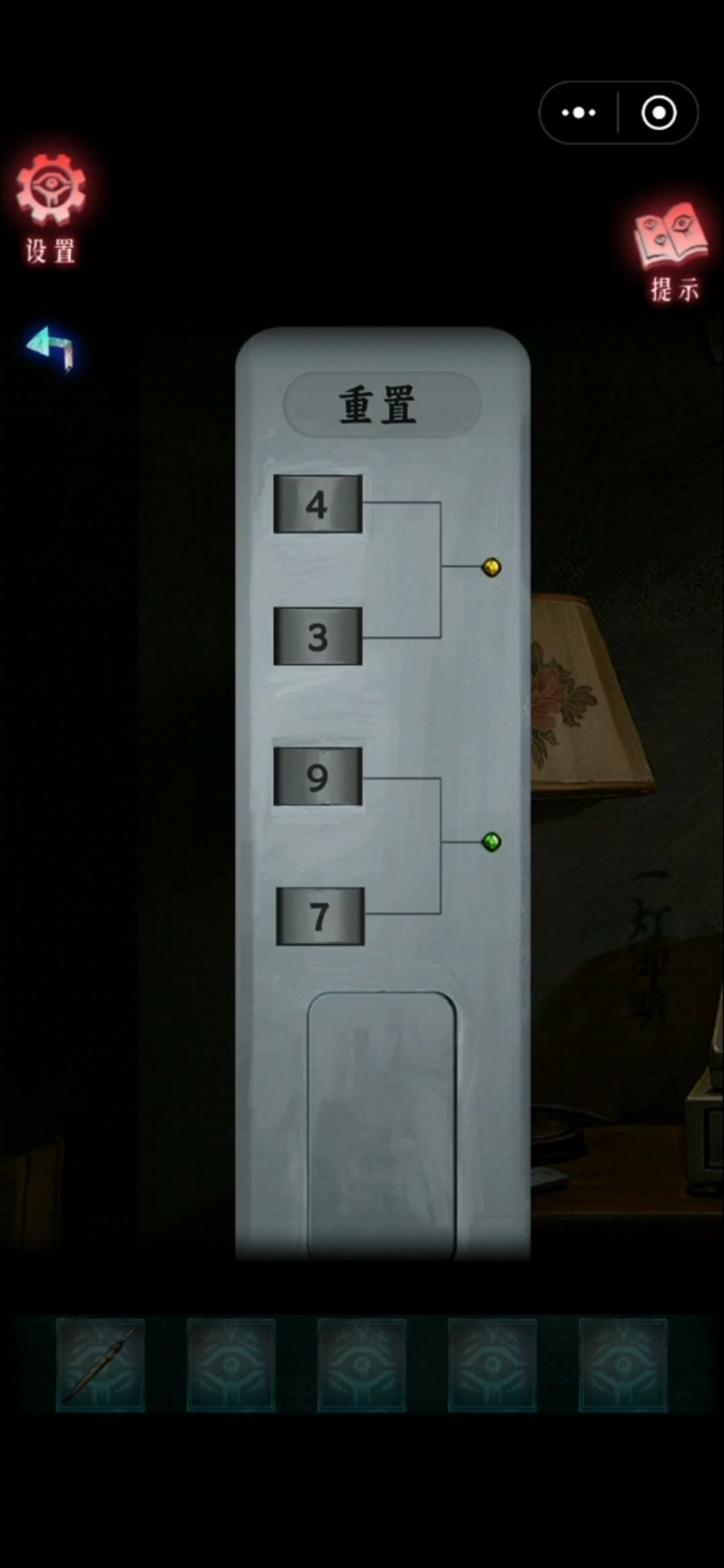 根据大街上渔网上珠子的线索 调整房间里台灯柜子上的算盘 如图 获得电池