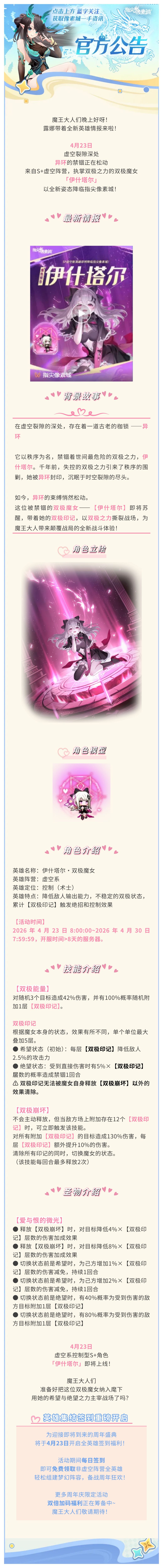角色预告丨绝对魔女战线!SP「伊什塔尔」降临像素城!