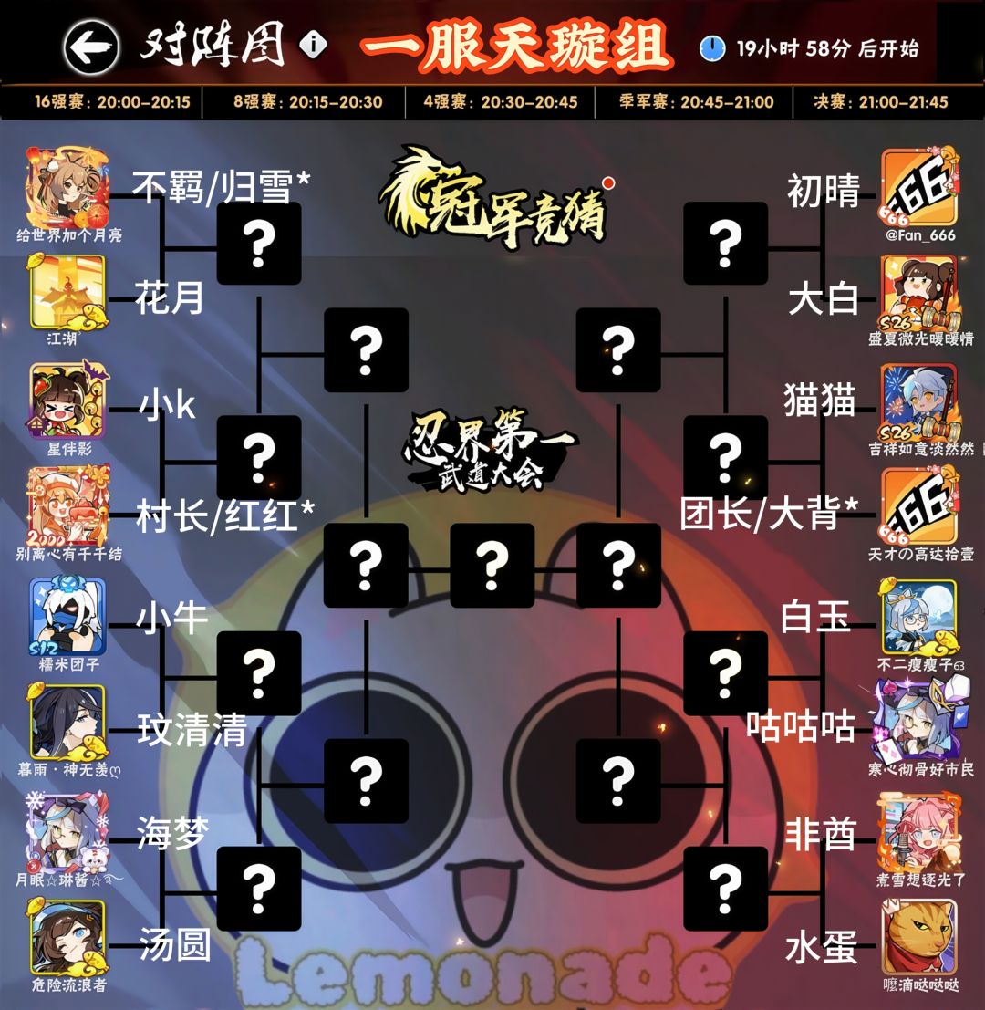 第二十五届(一服)天璇组武道会淘汰赛名单
