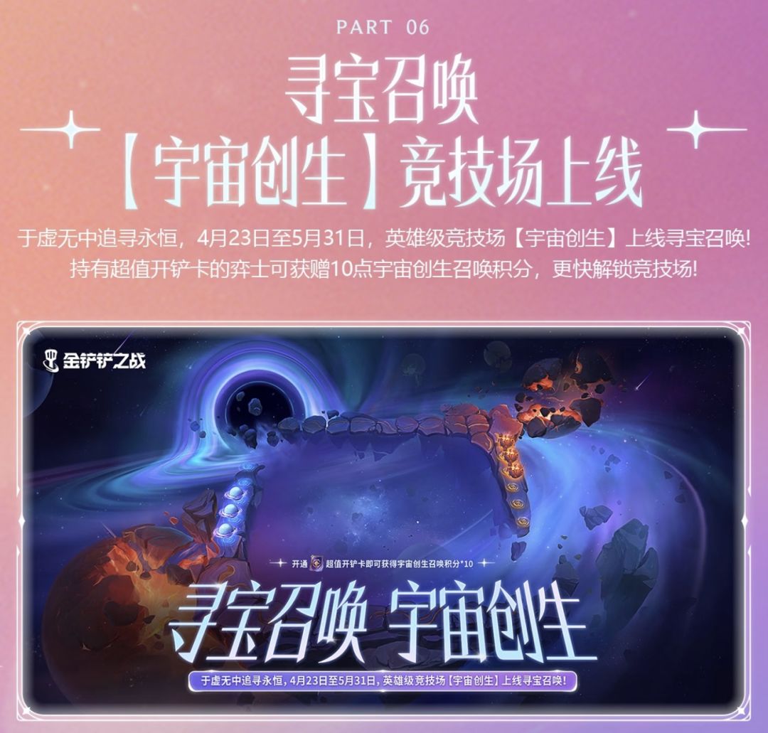 • 宇宙创生:全新英雄级竞技场上线寻宝召唤。