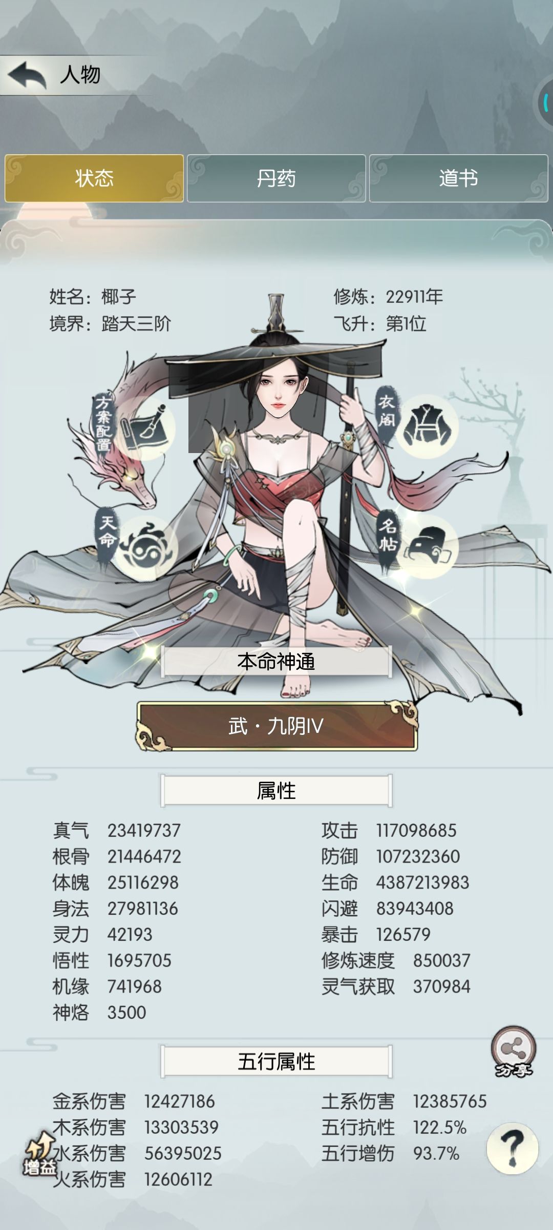 以前的点化大体是5+4+3的思路,也就是一主五带两副五,图1我就是主水4木3火的搭配,图2是我用的5+4的全水点化,可以看到多了1亿血和少量身法,少了60万+40万左右的副五。图3是我用5+3+3,也就是5水3木3相柳,少了10万木和40万火换了7千万血。其实也不难得出,主五比副五高的越多,所获得的收益就越多,我主五大概是副五的4倍,自我感觉5+4已经是略微强于5+4+3了,毕竟几十万的副五对于以千万为计量单位五行来说确实不算什么大事,但1亿血可能就让我能多过一关。