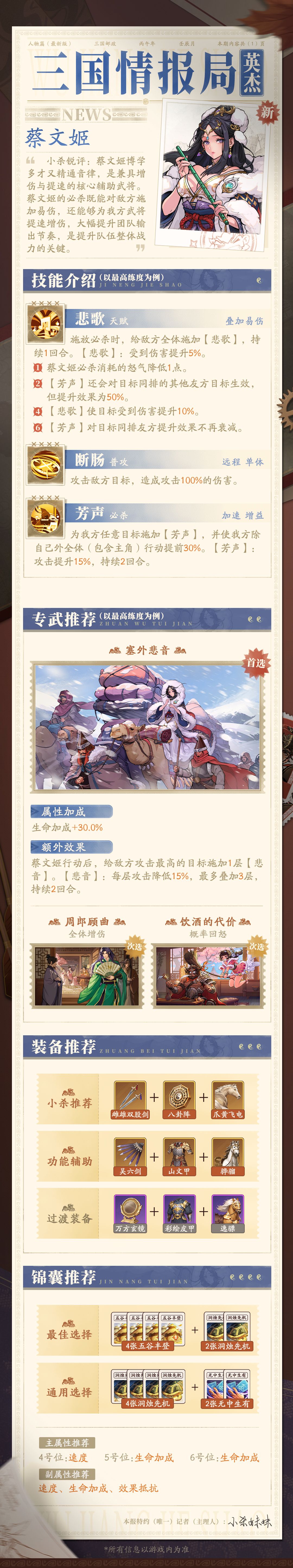 的培养攻略,蔡文姬精通音律,为友方武将增伤提速,给敌方施加易伤,大幅度提高输出空间~