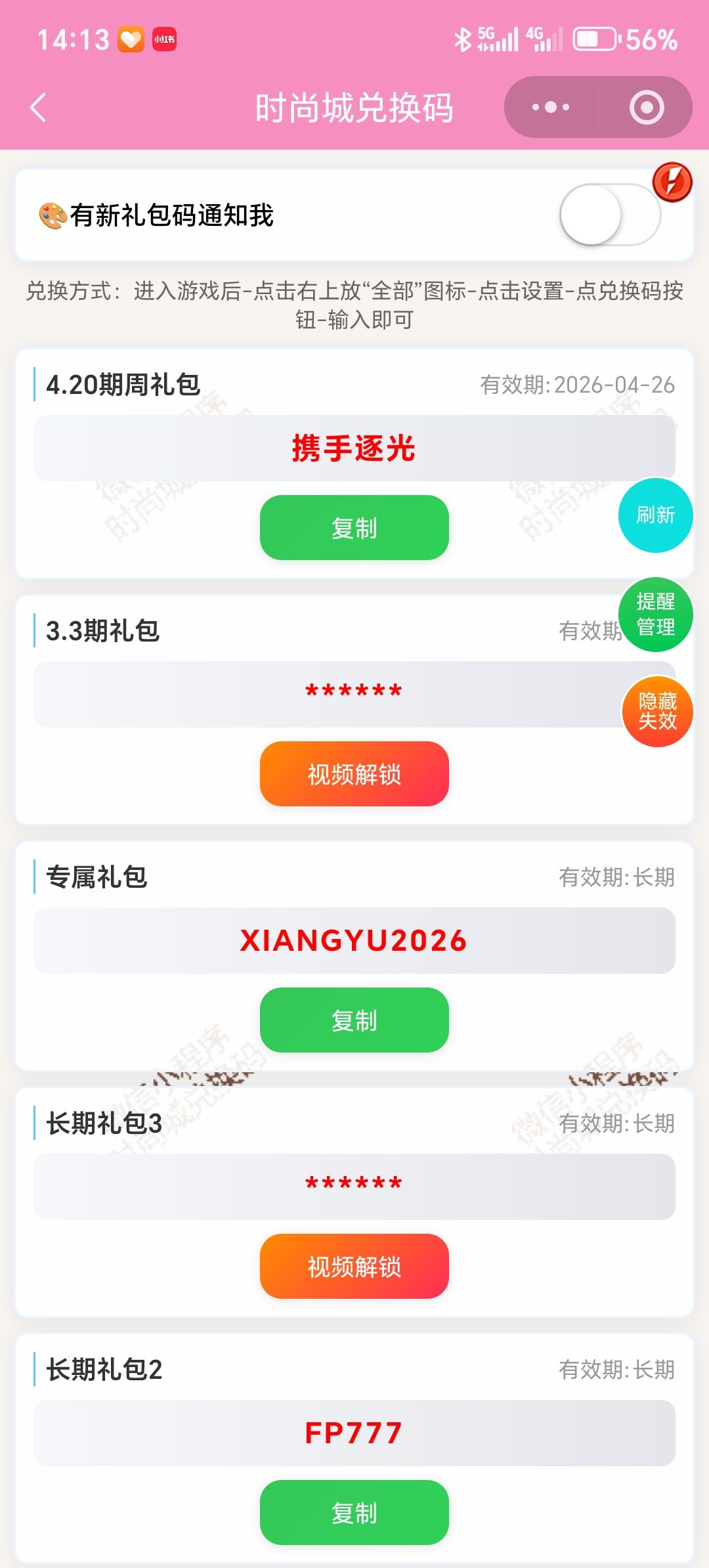 信息来源于小程序时尚城兑换码