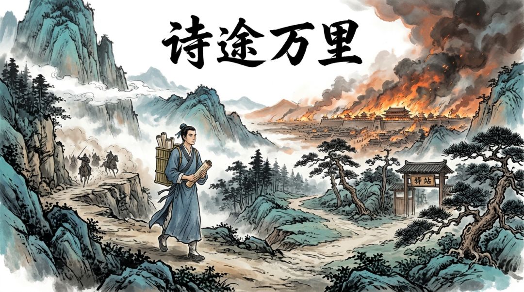 新手:南路蜀道线。长安(杜甫+王维) → 凤翔(杜甫) → 秦州 → 同谷(杜甫) → 成都(杜甫)结算。杜甫出场密集,容易凑够诗作。