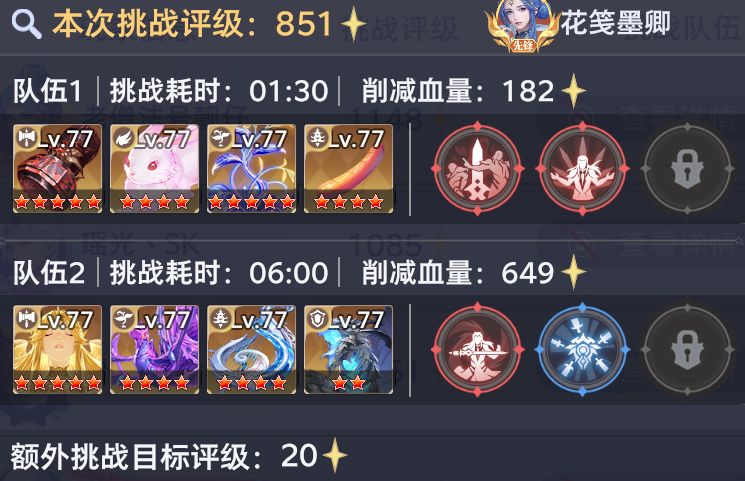 两支队伍使用奥义次数大于等于40 +10星 奥义释放次数必须达标,两队都要高频释放奥义,尤其是千仞雪队的循环连招