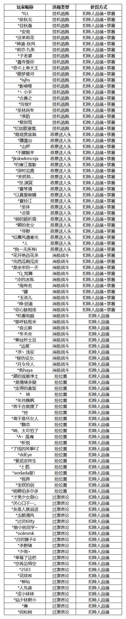 内务组将定期公布部分游戏违规处罚名单,以上为本次公布的存在游戏违规行为的阴阳师大人,还请各位大人引以为戒!