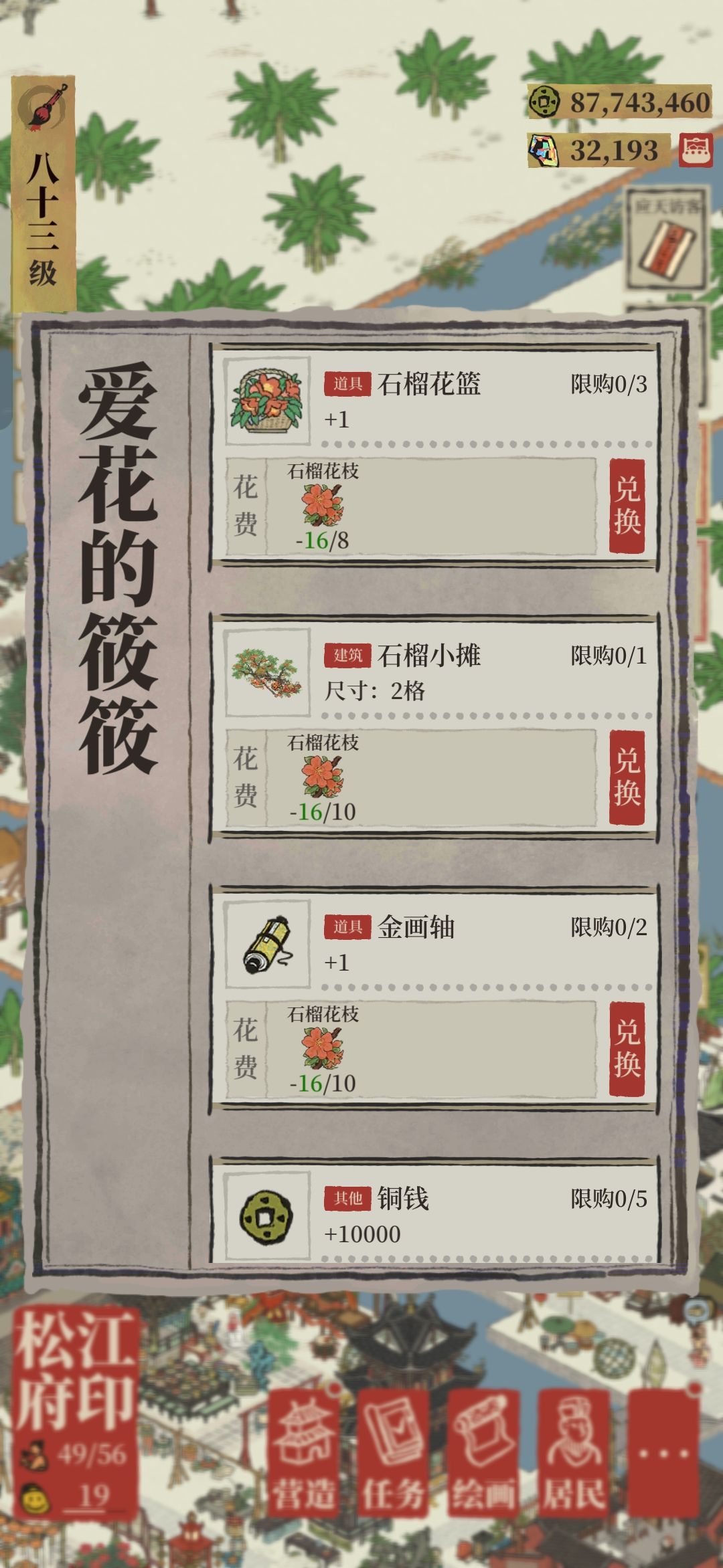 石榴小摊*2=🌺*20 榴花头像框*1=🌺*10