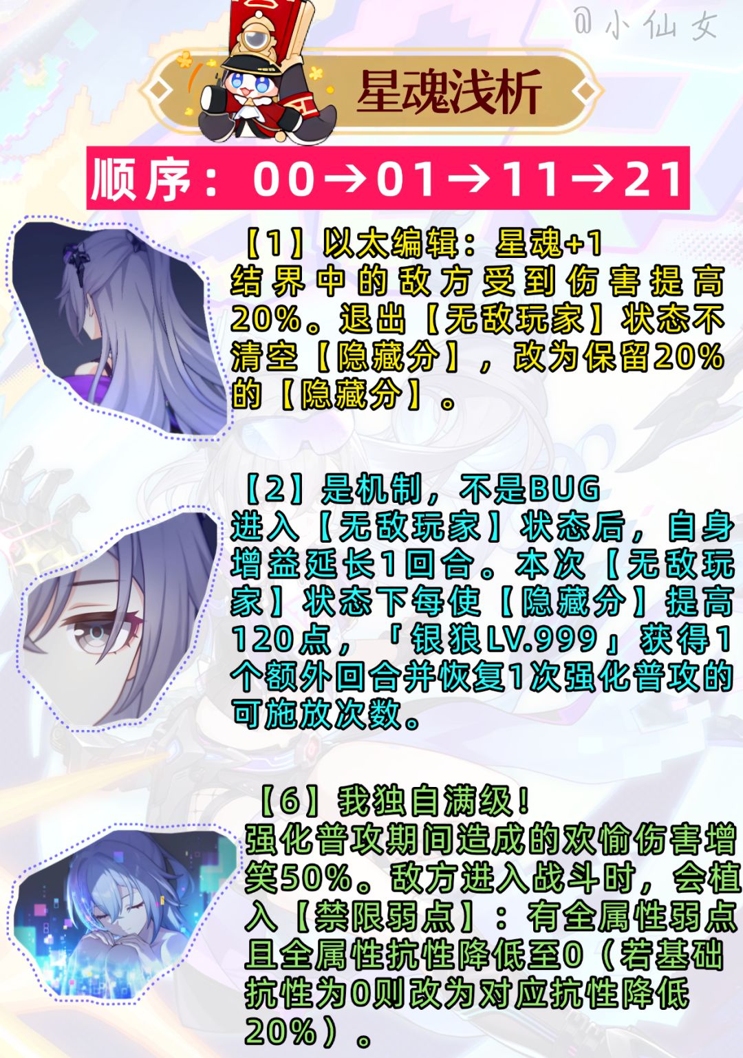 ②上下限表现俱佳:下限拥有180速超高频行动+高额倍率伤害,多主C互相增益,操作简易且伤害充足。上限速度养成天花板极高,合理排轴可借助拉条以及队友终结技,快速循环大招、频繁开启关闭大招,三保一短轴速杀敌方。