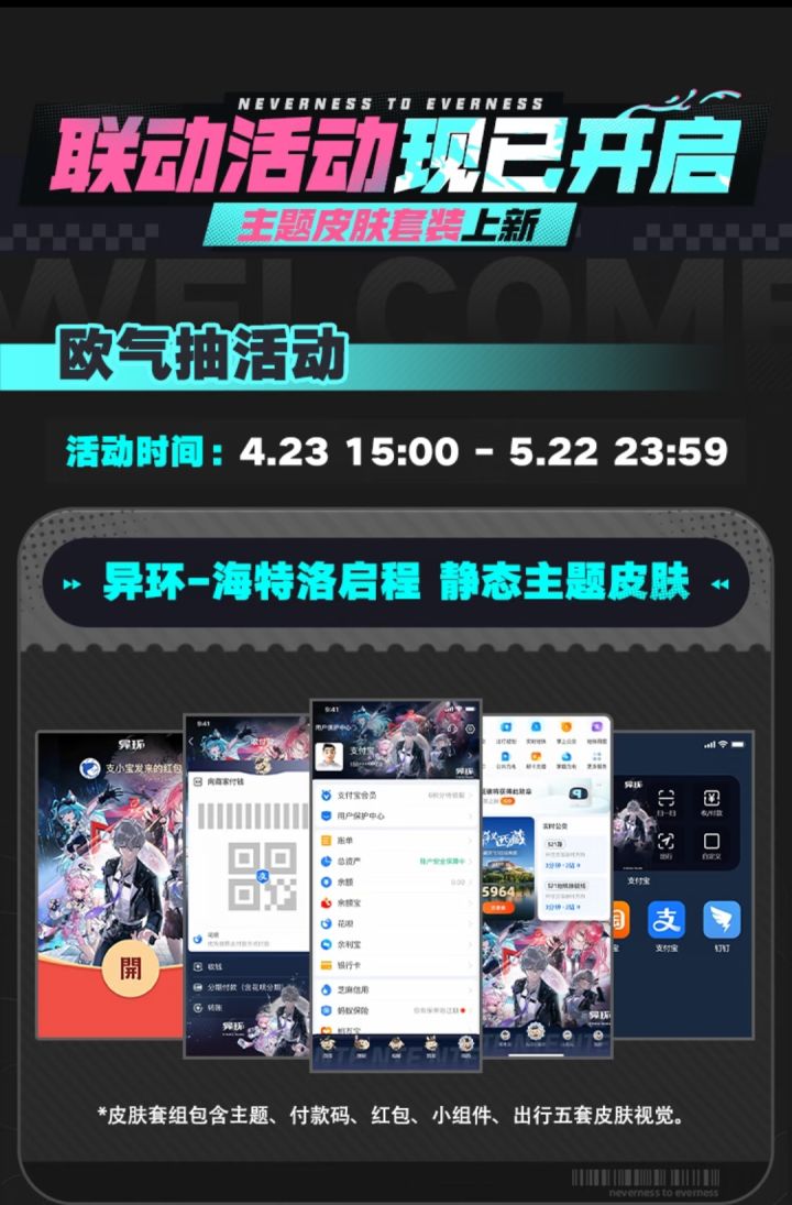 活动详情请前往《异环》×支付宝活动详情页查看,动动手指即可解锁全部福利。