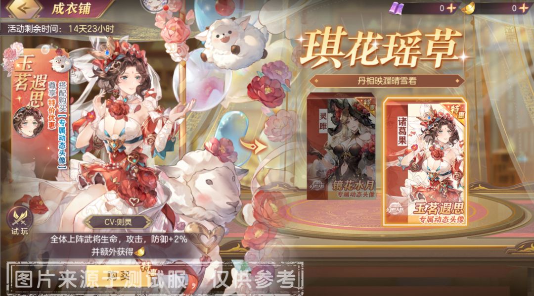 诸葛果·玉茗遐思:活动期间限购1次,售价98元,可搭配价值30元的缱绻·玉茗遐思动态头像打包出售,打包折扣售价:118元。