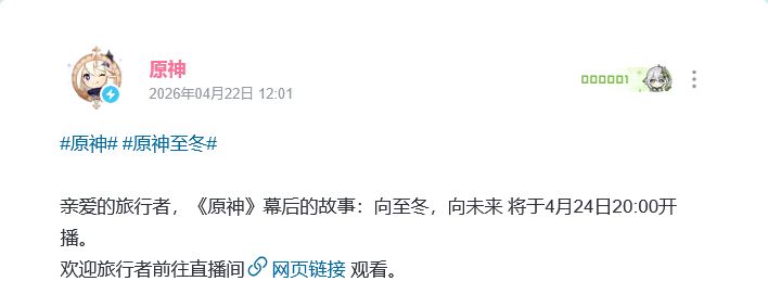 ❄️ 原神至冬幕后直播定档4.24!或将迎来全新情报前瞻爆料,冰神与冻原或将揭晓