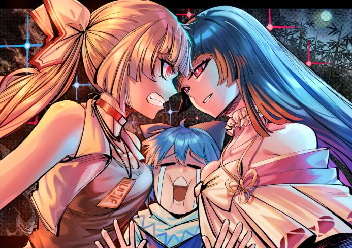 而上述的内容仅仅是第一场战斗的内容,在第二回合开始前,两只兔子找到了琪露诺,它们希望琪露诺能阻止辉夜和妹红,人傻话不多的琪露诺马上就出发了!可是意外的事情发生了,不过这次有狼烟指引,琪露诺还是到了永远亭,但随着琪露诺的深入,她发现辉夜和妹红已经打起来了!