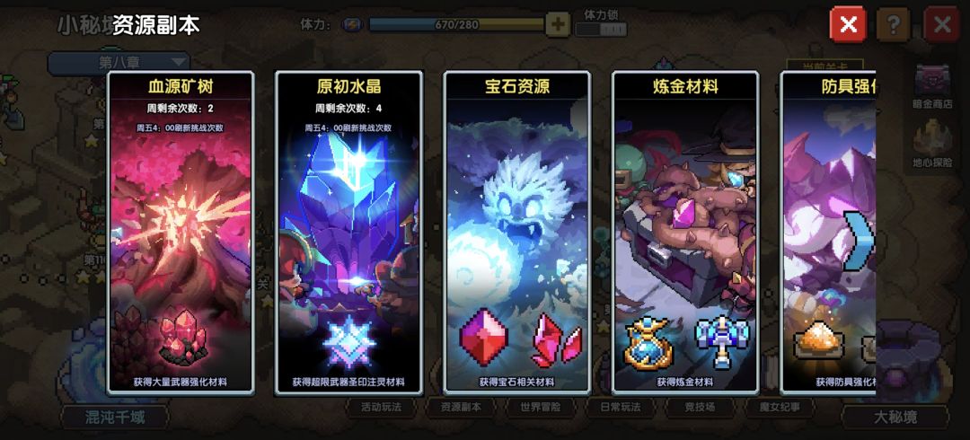 2.保留钻石,可以在勇者节双倍活动开启后,每天花钻石购买一点体力,因为目前炼金活动常驻,所以攒钻石去买限定宠物的老思维可以变一下,用每两周攒的齿轮去换取限定宠物蛋。钻石可以考虑优先获取固定资源副本内的道具。