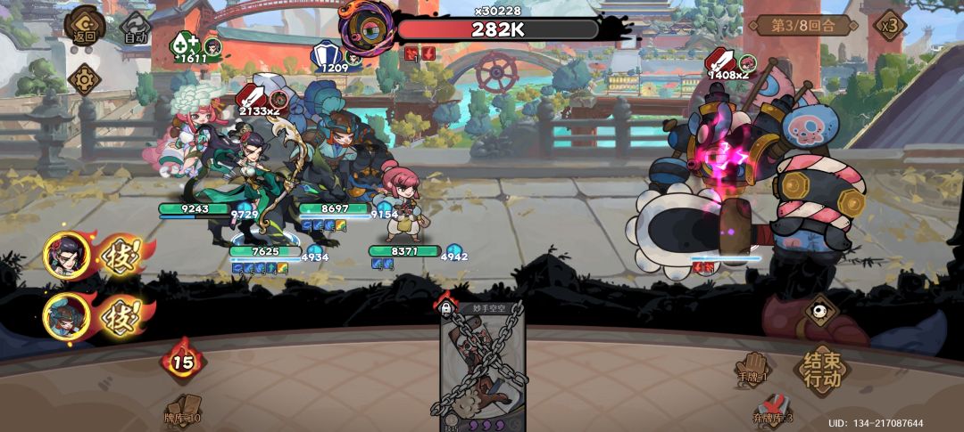 所以留着神将的技能攻击Boss,触发归藏,把锁定的牌弃掉,就可以进去循环了。每一轮注意观察一下牌库的牌就行了。