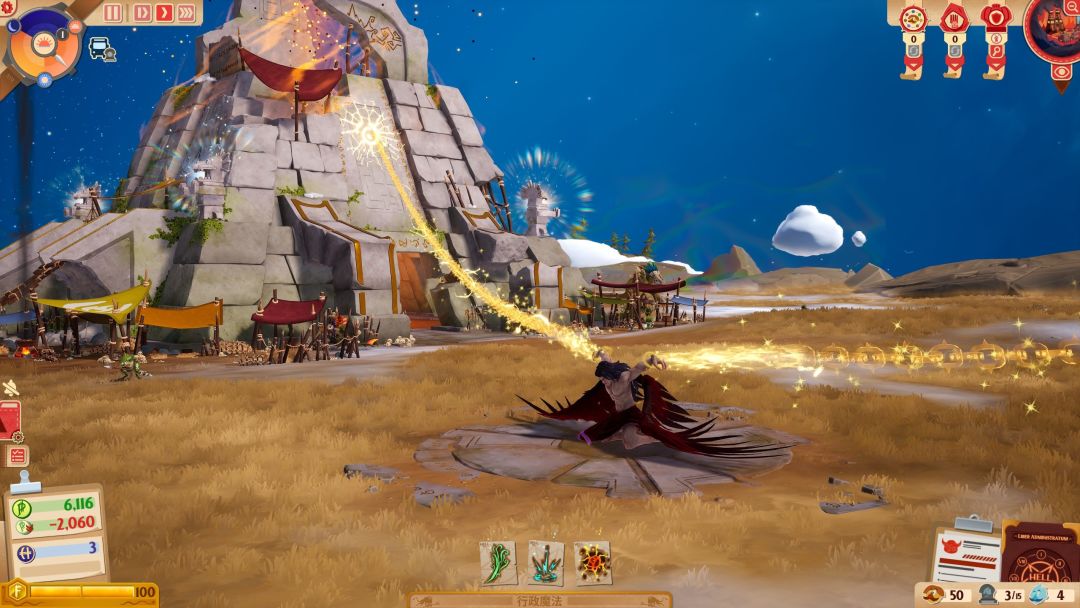 人间界虽然没法建造建筑,但是可以使用魔法,魔法可以用来治疗或者杀死小人,小人死后灵魂就会坐车到地狱。
