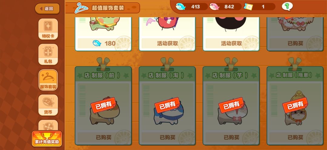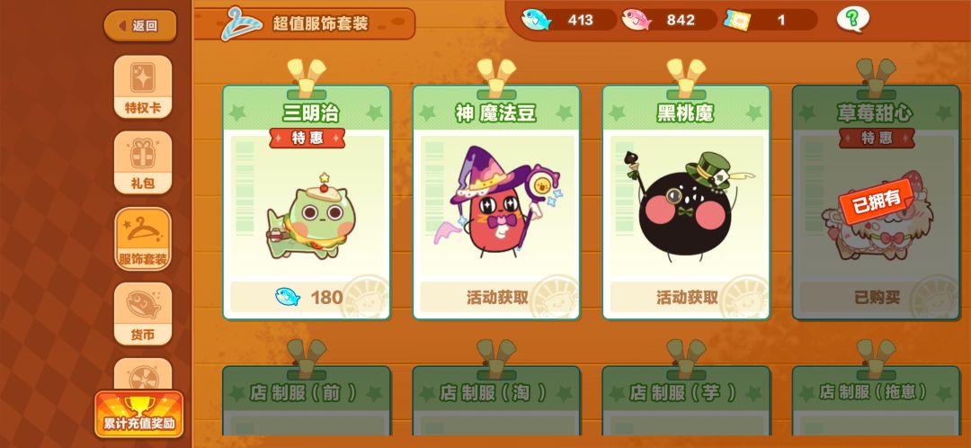 ②超值服饰套装中:原来的红小豆/李建勋和其他喵喵的服饰少了很多。