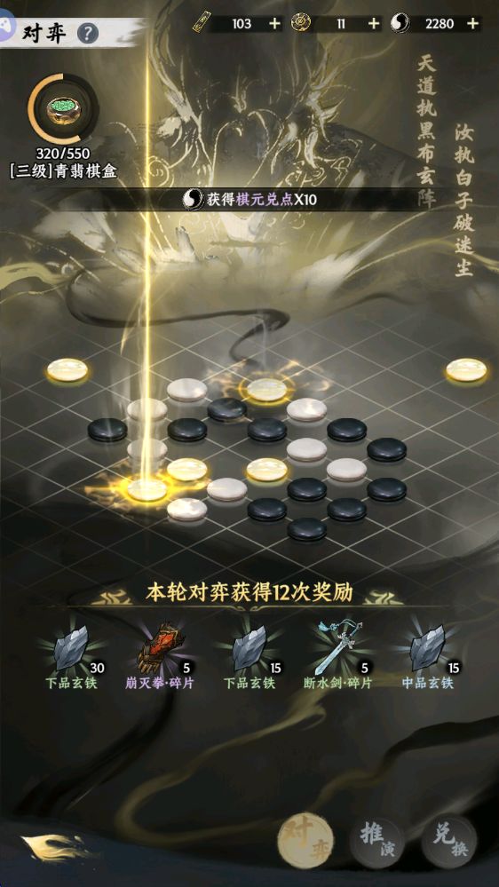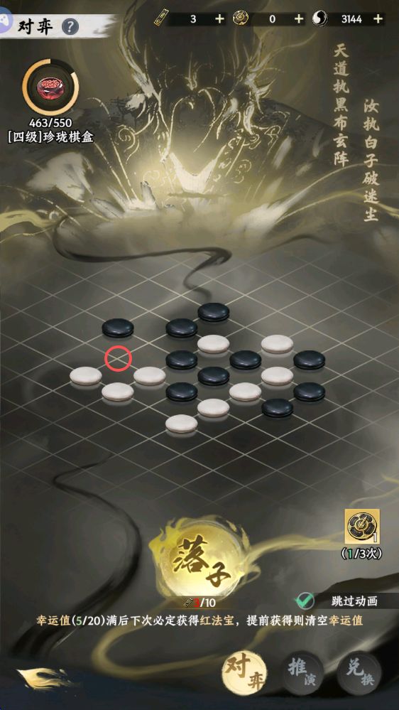 通常大家随便点击的时候一般都是获得十次奖励的玲珑妙手,按图中所示落子可触发神之一手获得12次奖励。