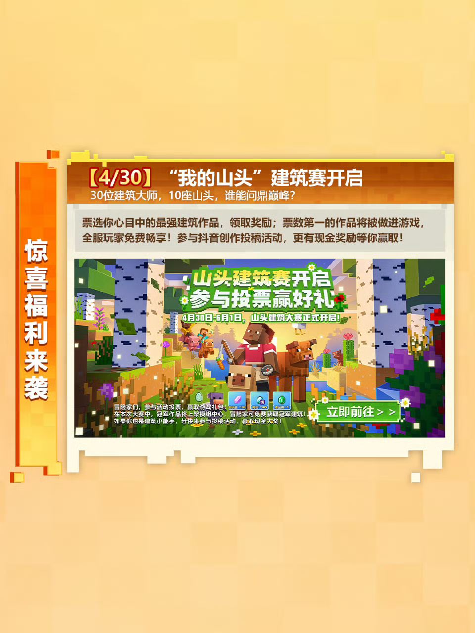 - 「我的山头」全民建筑大赛开赛,冠军作品将永久植入游戏内全服可见