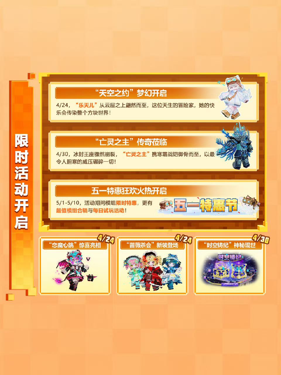 - 五一专属抽奖活动、模组限时特惠组合辑全面开启,小长假每日游玩福利不间断