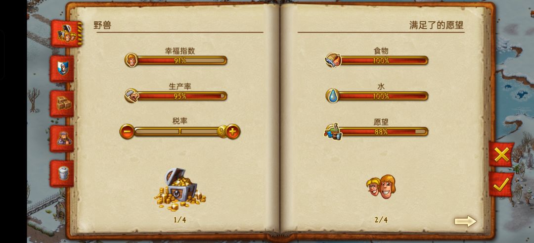(为了生产率还是尽快调回来吧)除此之外每个建筑物都会有不同的声音,市场有热闹讨论声,葡萄酒酿造厂有工人踩葡萄的声音。每个建筑都会做动画,可以一路目送任何一个工人下班回家,和居民一起看马戏团表演,或者目睹大摇大摆进村的土匪和守卫的决斗![[TapFamily_看戏]](https://img-tc.tapimg.com/market/images/81393719ec733f589d6753db27572595.gif)