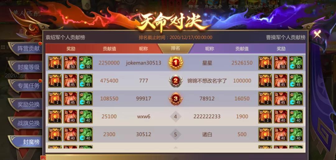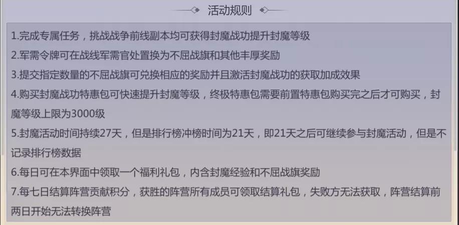 个人贡献值达到前列会在“封魔榜”展出并获得相应的排名奖励。