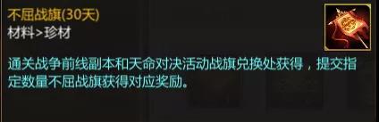 通过战争前线副本和战旗兑换界面可获得“不屈战旗”。