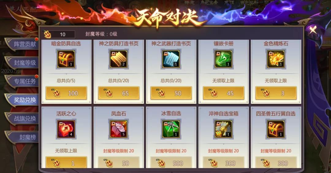 封魔勋章可以在奖励兑换界面兑换相应的奖励。