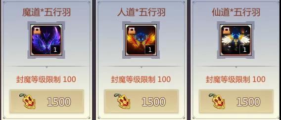 还可以直接换取目前最顶级的装备,包括魔道/仙道/人道*五行羽