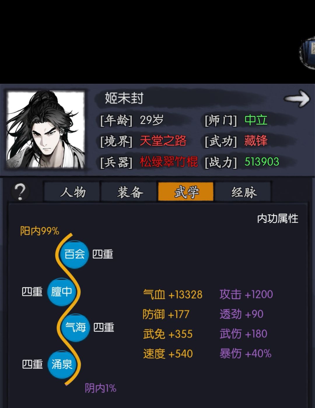 3:培养方向:高臂力和体魄,再考虑定力和根骨、胆识。一技能的作用,练度相当的内战中还需要顾及一下速度。就要用姬哥的话还需要配合练至少一个棍,首推瘦子,性价比超高,还有可以考虑的棍子就是司空,但是练度要求比较高,性价比超低。其他棍子比如黄蓉、瞎子、胖子等等就都是更次的选择了。但有时候也不是不能针对用,具体看阵容了。