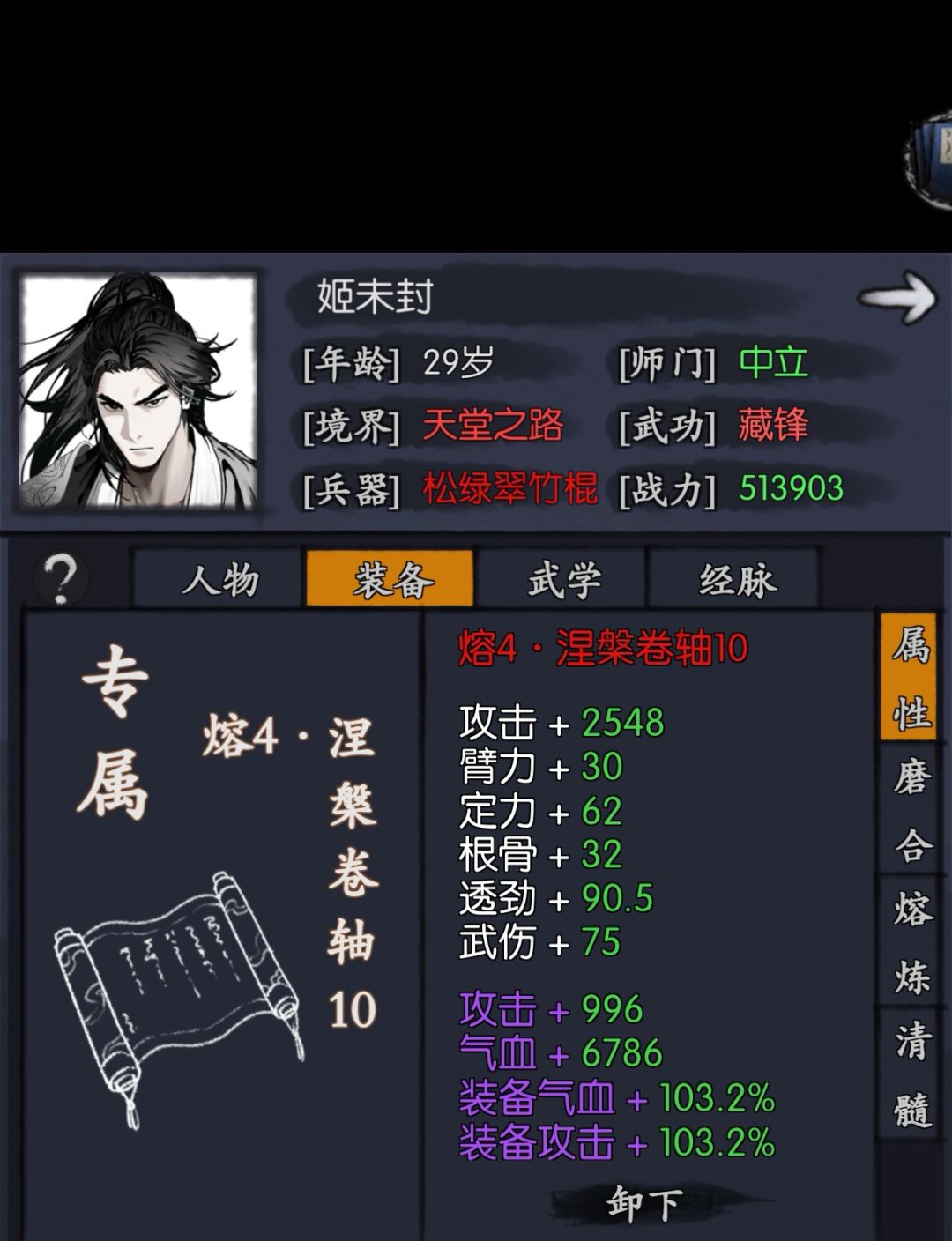 1.属性:总体来说属性分两个流派,一个是高韧性双防高血高攻击,另外一个就是高爆免高双防高攻击高血。这两个流派都很考验洗练,作者这里是韧性版本。主走阳丹,清遂也走攻击和血。