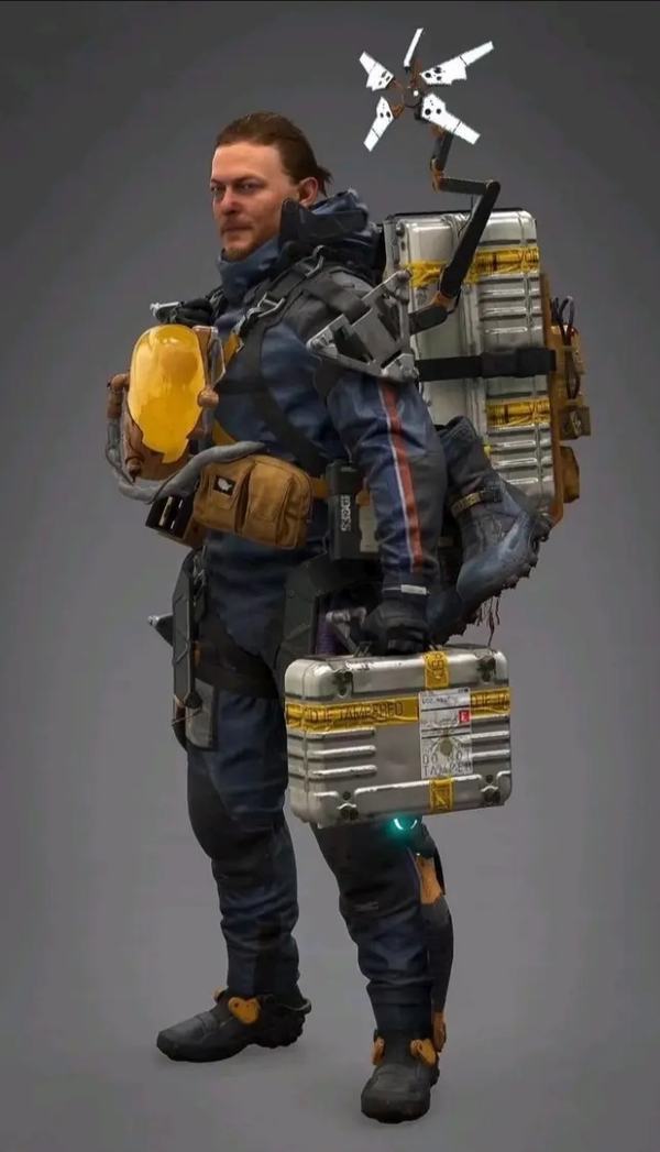 那么太空沙中搬运工肩上的这个装置和胸口上的这个灯有什么作用呢?游戏中也没见他用过呀,而且第二张图片中的人物山姆布里吉斯也是搬运工,游戏的内容也都是以送快递为主也有个别任务会送尸体,我个人感觉好相似啊