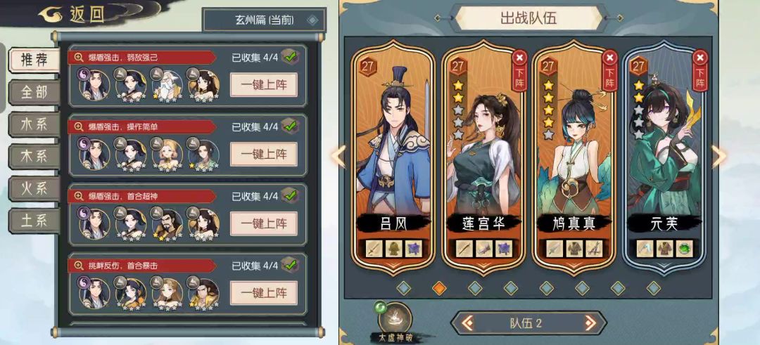 每回合都一样,葬花+莲宫华秒两轮4只,第三轮出来真真放群毒施加群体悠然然后炸死两只!