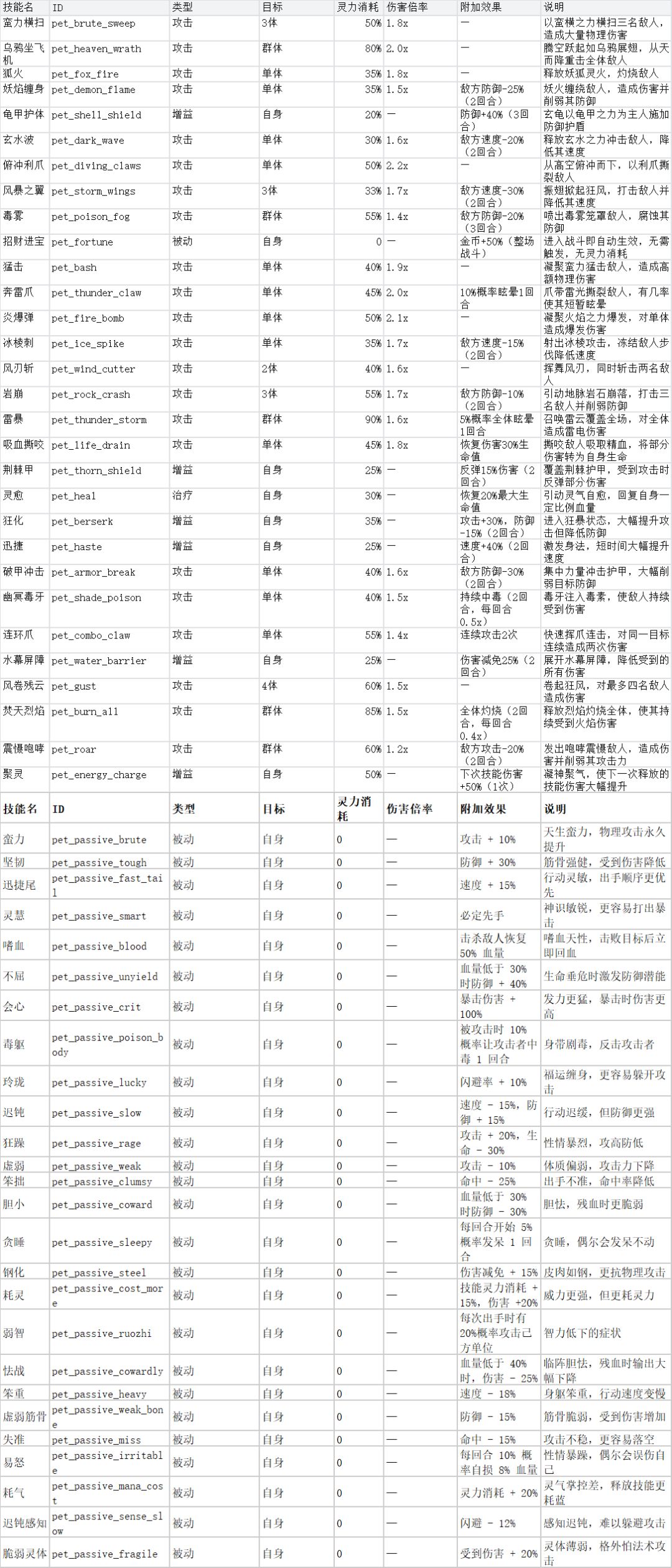 图5-图6:宠物品质/资质/技能槽数量介绍和技能详细说明。