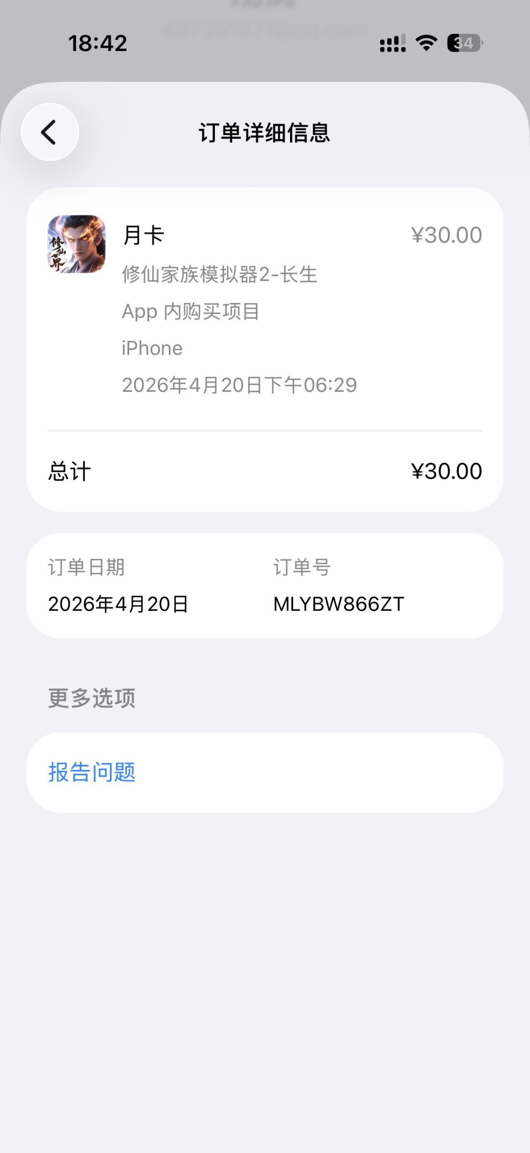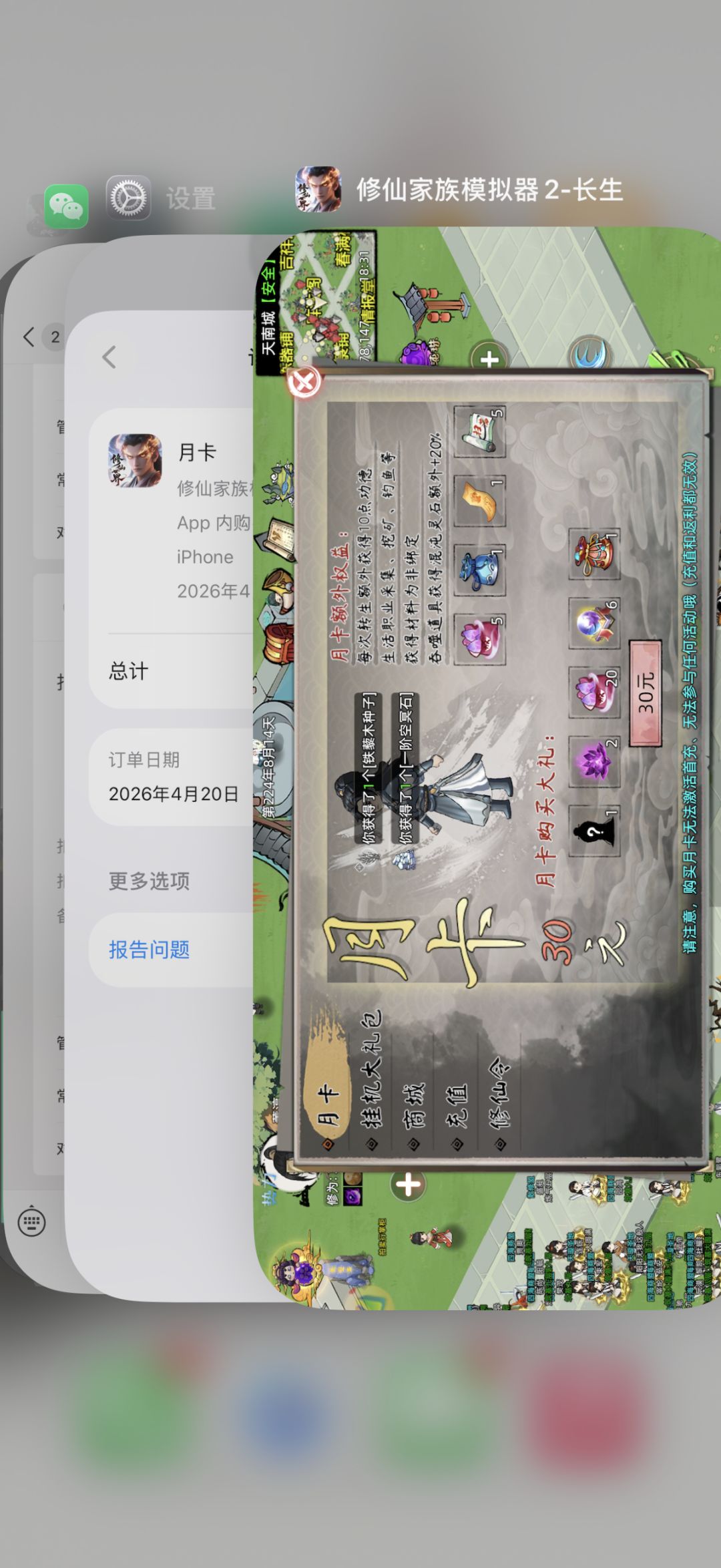 我在修仙家族模拟器2中充值一笔月卡订单实际未到账 我联系在线客服客服和我说再次点击充值看看能不能到账 我这边按照客服的要求点击第二次付款充值到账了 但是我的苹果帐户产生了第二笔未支付的月卡订单 我游戏中也只到账一笔月卡的数量 我联系苹果客服说要求取消这笔订单但是没有成立 请问你们游戏充值是需要买两次吗