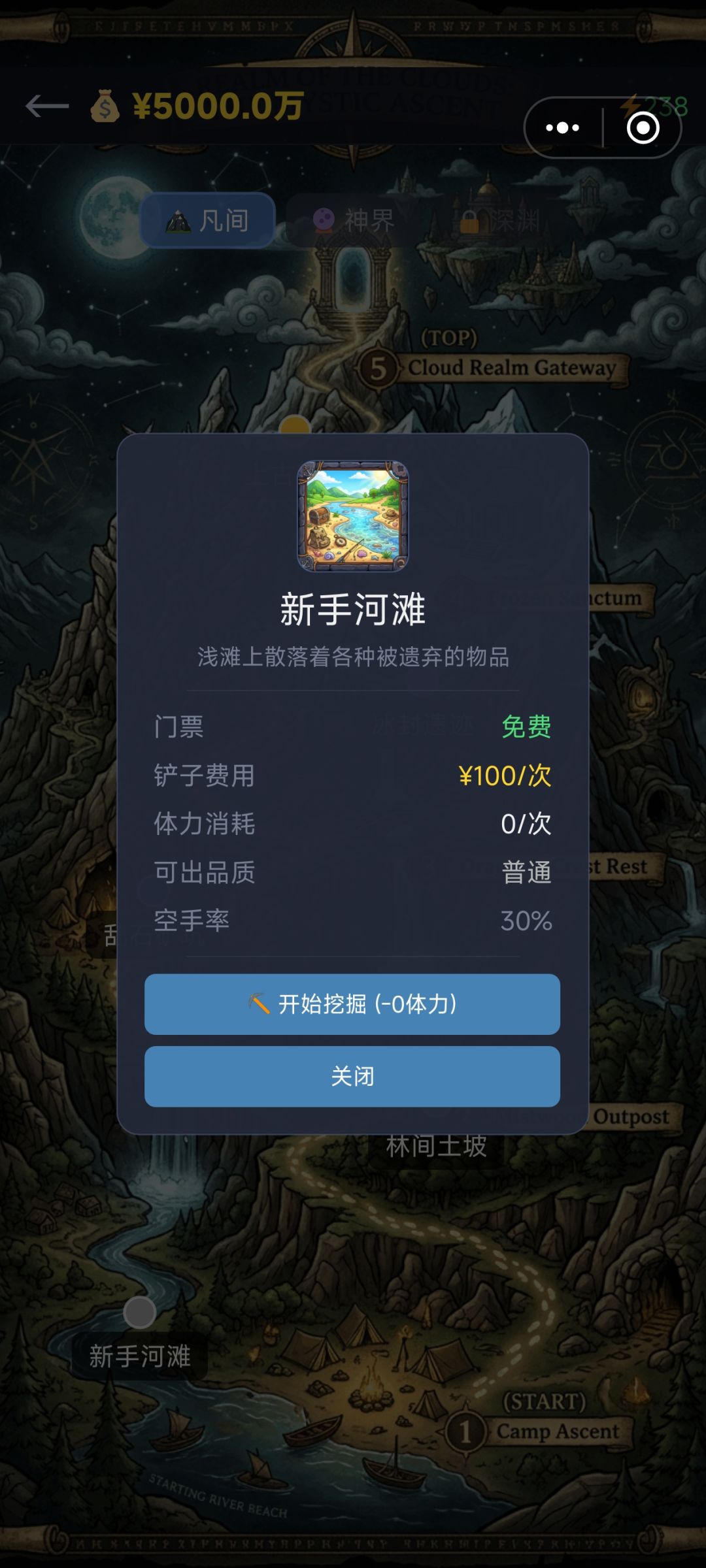 新手进游戏就是挖,新手河滩不需要消耗体力无论前期还是后期都是有用的地图,挖满背包直接撤。