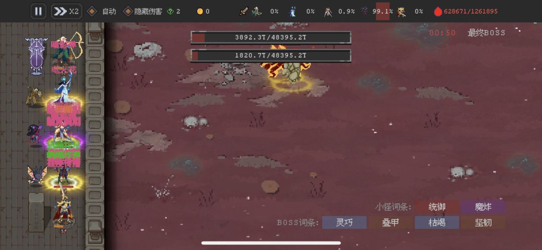 161层之前,基本比较难保持城墙满血,配置为5-6条负面 3-4条精英 1条小怪,1-2条城满,剩下的撕裂和物理,根据自己的特质调整,撕裂:物理为2:1