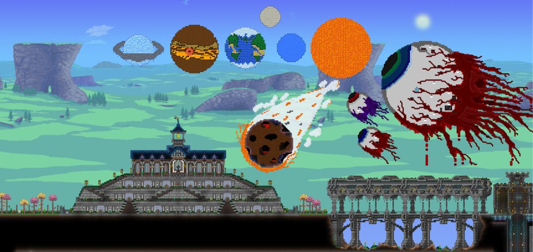 虽然4年已过,但也才刚刚达成了地表满建筑,像素画填满半个地狱,关于这地图的人物时长加起来也应该有1500h了