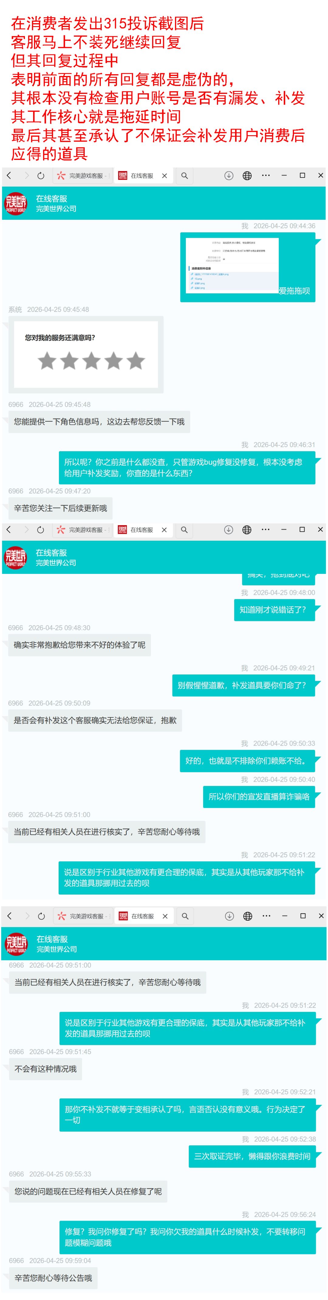 3.异环25日晚进行了第二批问题账号的补发,但也仅是补发,并未对二次虚假宣传以及该消费欺诈行为给出说法与赔偿。总不能让玩家感恩戴德你花费3天时间修复了一个不一定真的修复了的问题吧。