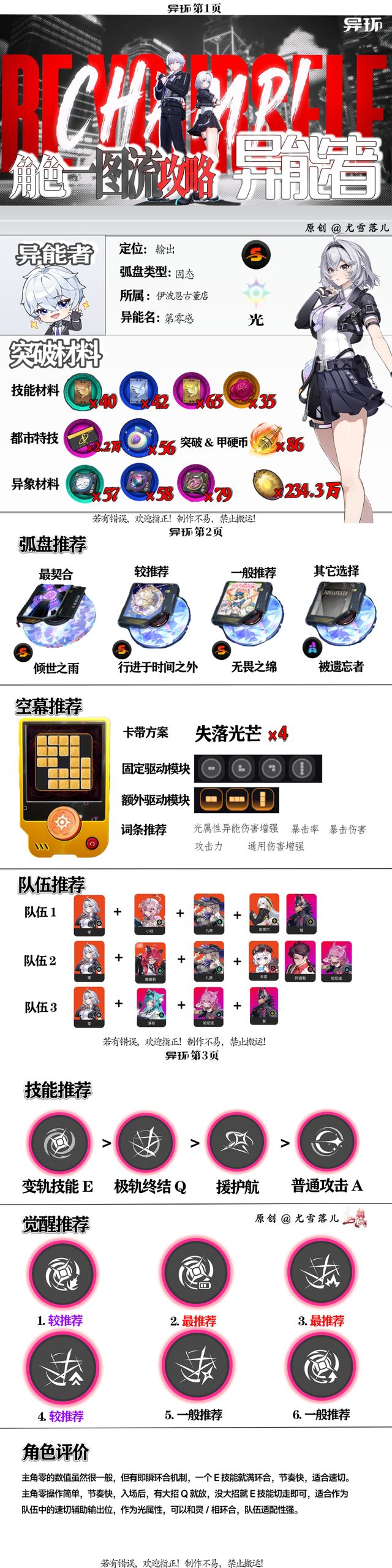 异环攻略:主角零一图流,材料、弧盘、空慕、队伍、技能等讲解