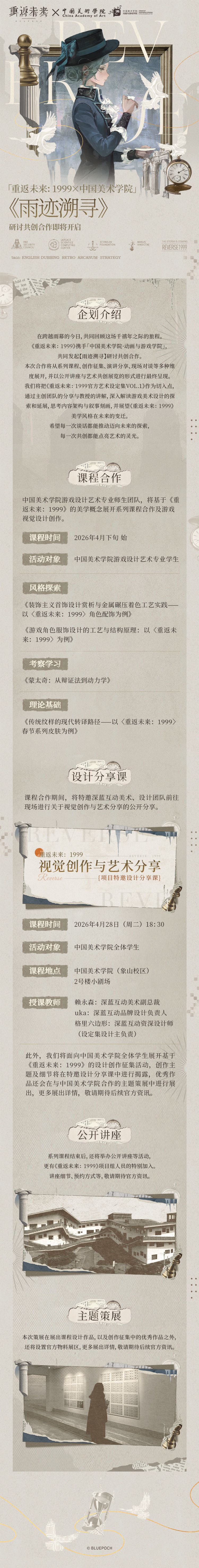 课程结束后还将会开设基于《重返未来:1999》的设计创作征集活动,优秀作品还会在与中国美术学院合作的主题策展中进行展出。