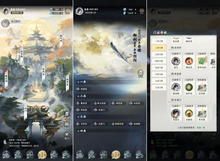 (二阶门派–恒岳派、五阶门派–云天宗)