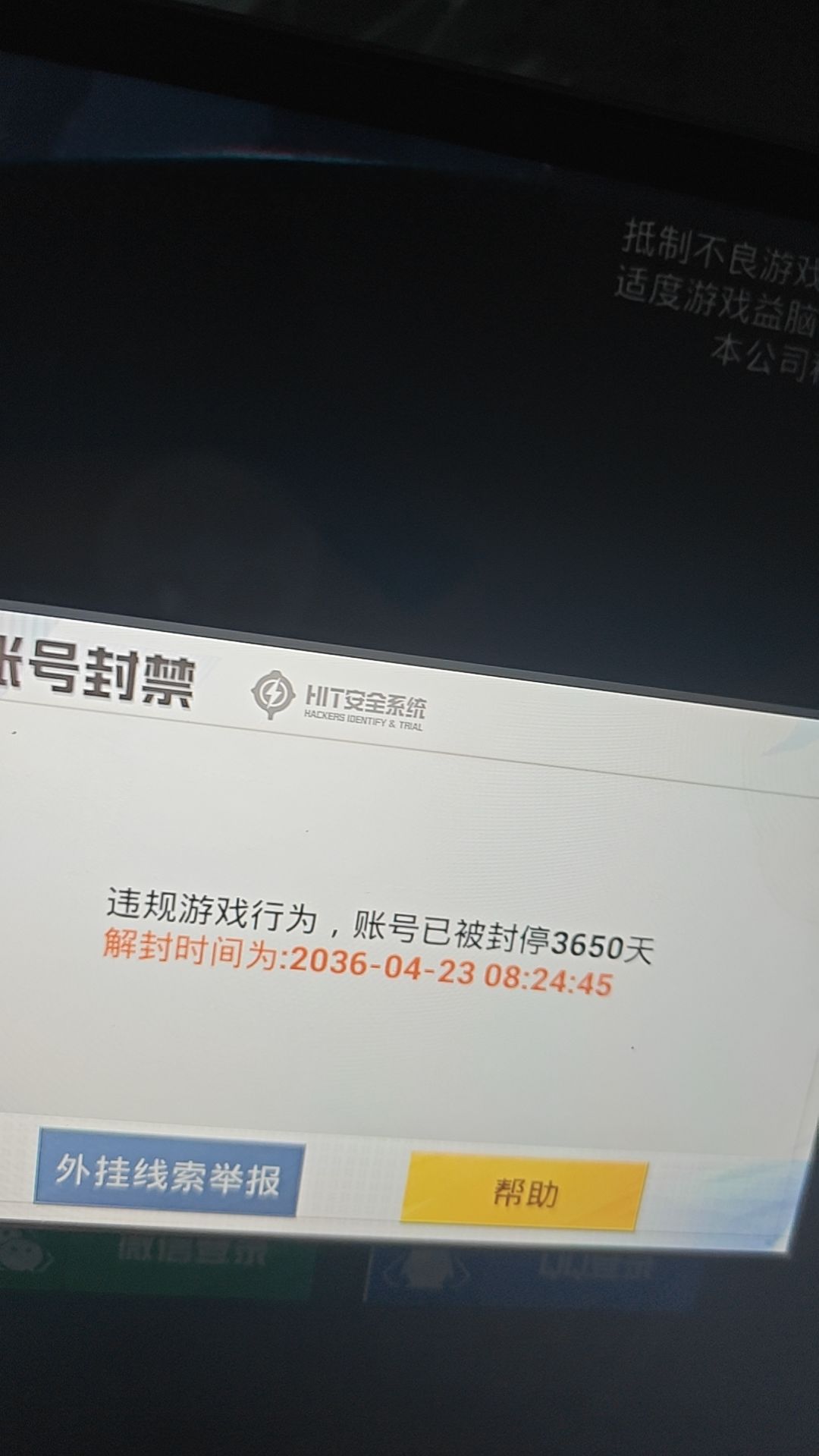 尊敬的和平精英官方客服您好: 本人游戏账号昵称:孩脚・好数字ID: 369820742登录账号:安卓微信区,于2026年4月26日上午时在登陆过程中被显示系统封禁,封禁提示为:使用模拟器在非手机环境下运行,封禁3650天 本人郑重承诺,自注册账号以来,始终严格遵守《和平精英》用户协议及游戏规则,从未使用任何外挂、修改器、脚本等违规工具,从未参与坐挂车、恶意组队、透视自瞄、违规发言、利用BUG牟利等一切违规行为,该账号仅由本人在官方腾讯手游模拟器上正常登录、公平游戏,无任何账号共享、代练、异地异常登录等情况。 此次封禁属于系统误判,对本人游戏体验及账号权益造成了严重影响,现附上封禁提示截图,恳请官方工作人员仔细核查后台数据,核实本人无违规操作行为,尽快解除对账号的错误封禁,恢复账号正常使用。 感谢您的耐心审核与帮助,期待您的官方回复!