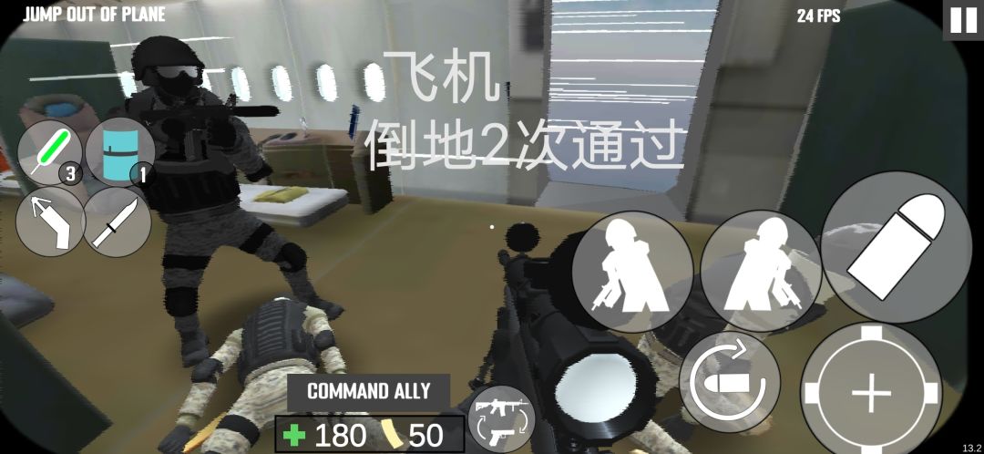 飞机:特警胜利。我方倒地两次。