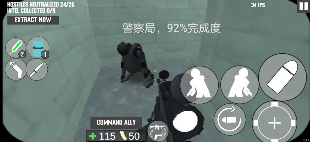 我只负责指挥队友前进到有敌人的地方,一切战斗交给队友,我不插手,只在队友倒地时把队友扶起来。若还没消灭所有匪徒时,ai队友就死亡,视为匪徒胜利,否则视为特警胜利,记录队友倒地次数。