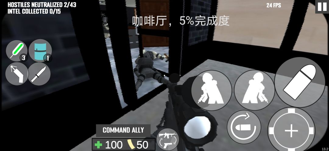 这图难度挺大,同时考验攻入建筑和室外对枪,不推荐新手首次游玩尝试。(建议:通关1到2张图后来尝试)