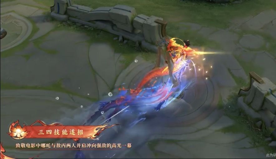 此次联动皮肤最大亮点便是打造出大小哪吒双形态的独特设计,完美复刻电影里哪吒的经典形象与蜕变情节。局内常态下,皮肤呈现出灵动俏皮的小哪吒造型,红黑金经典配色搭配标志性丸子髻,尽显少年稚气,还还原了电影中踢毽子等趣味细节,满满情怀感拉满;当开启三技能后,封印即刻解除,哪吒瞬间变身霸气热血的大哪吒,发丝如火焰上扬,周身气场全开,更有龙形敖丙伴飞同行,技能释放时视觉冲击力爆棚,高度还原电影高燃名场面。
