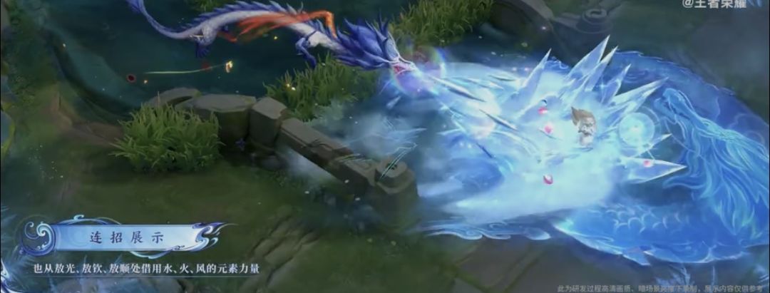 此次实机展示全面曝光皮肤局内表现,从普攻冰花碎光、被动灵珠印记叠加,到大招双形态变身与全屏特效,每一处细节都兼顾视觉质感与实战辨识度。官方同步公布上线信息,该皮肤将于4月29日更新后正式上架,同步推出含皮肤与个性按键的超值礼包,限时990点券即可入手,后续也将单独开售。