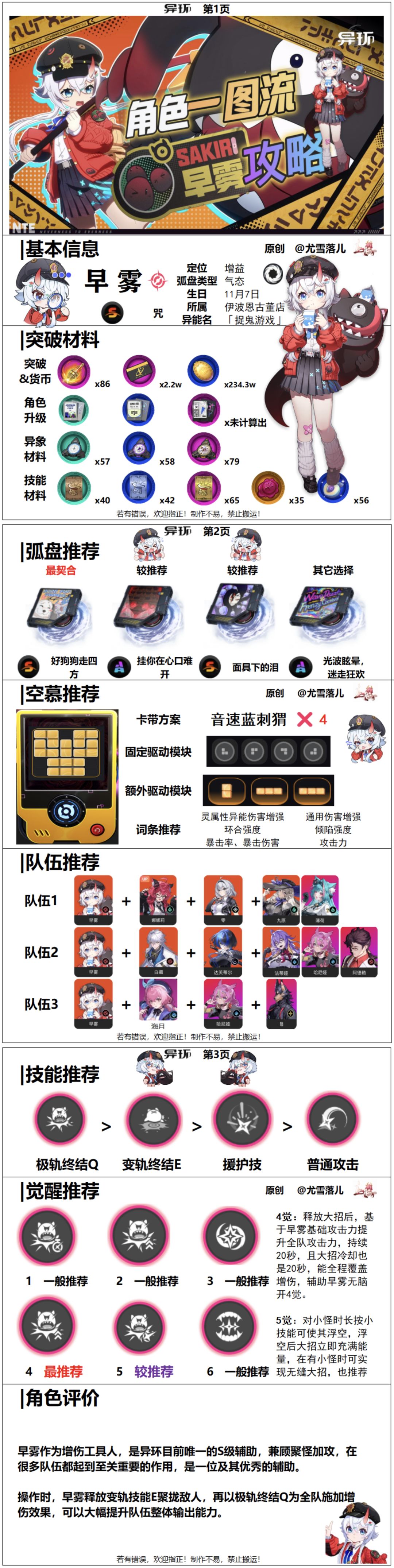 异环攻略:早雾一图流,材料、弧盘、空慕、队伍、技能、等讲解