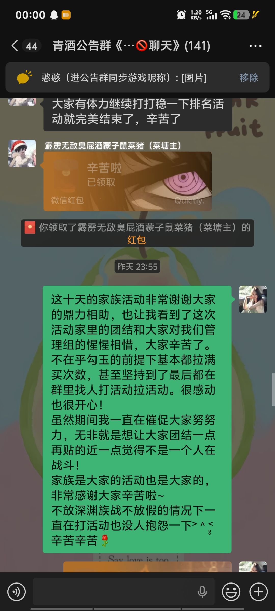 期间只有提醒没有让我非常唠叨催促的大家去打去肝,只要到点就有人自己是喊我提醒大家拿粮拿体力。