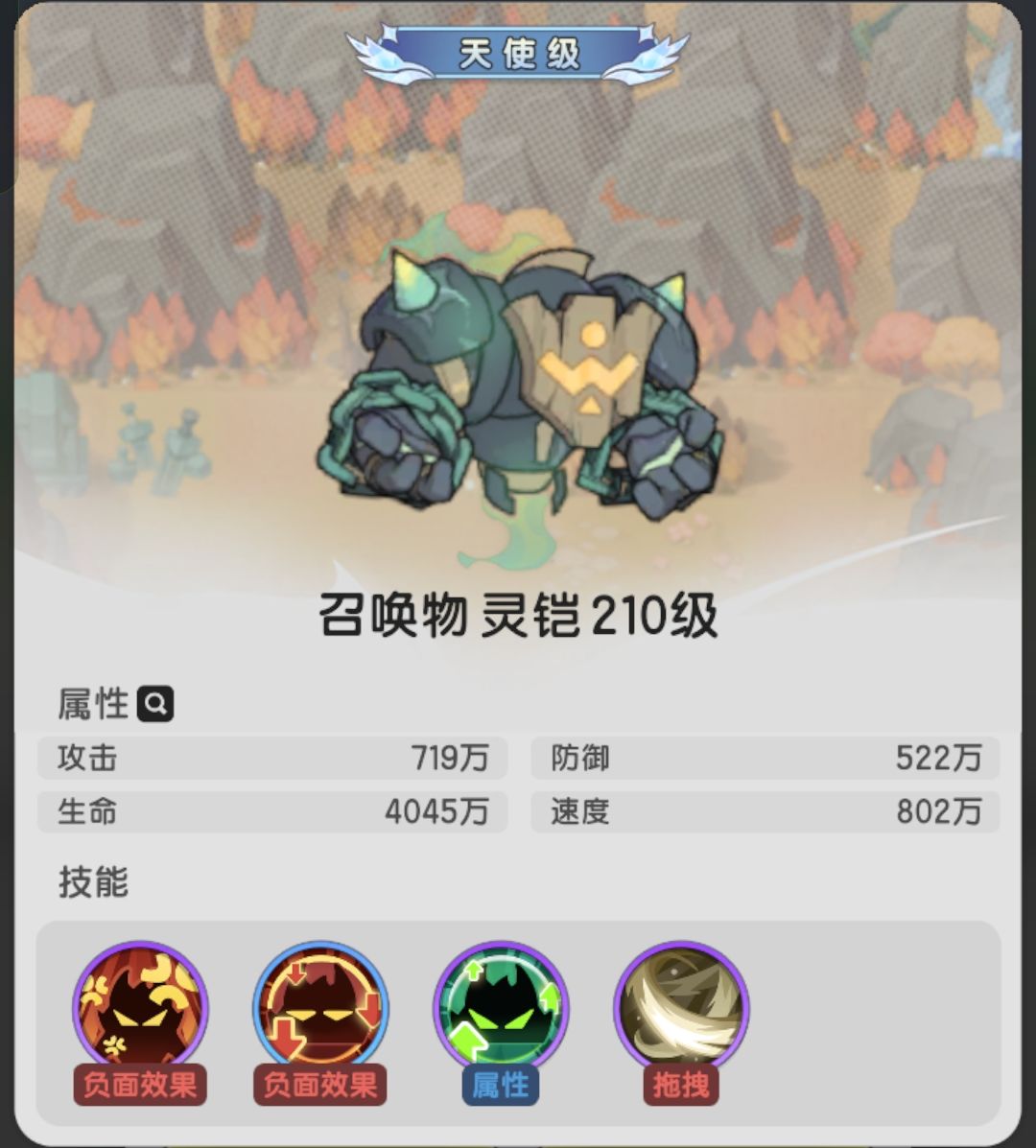 卡位:部分怪物有技能如冲刺,不仅容易伤到召唤师,伙伴和其他大召唤物,还极易导致灵铠拉不住,导致长线附伤流失效,但如果怪物没有位置释放技能,则不会释放,召唤物暗影在后排可以一定程度解决这个问题。